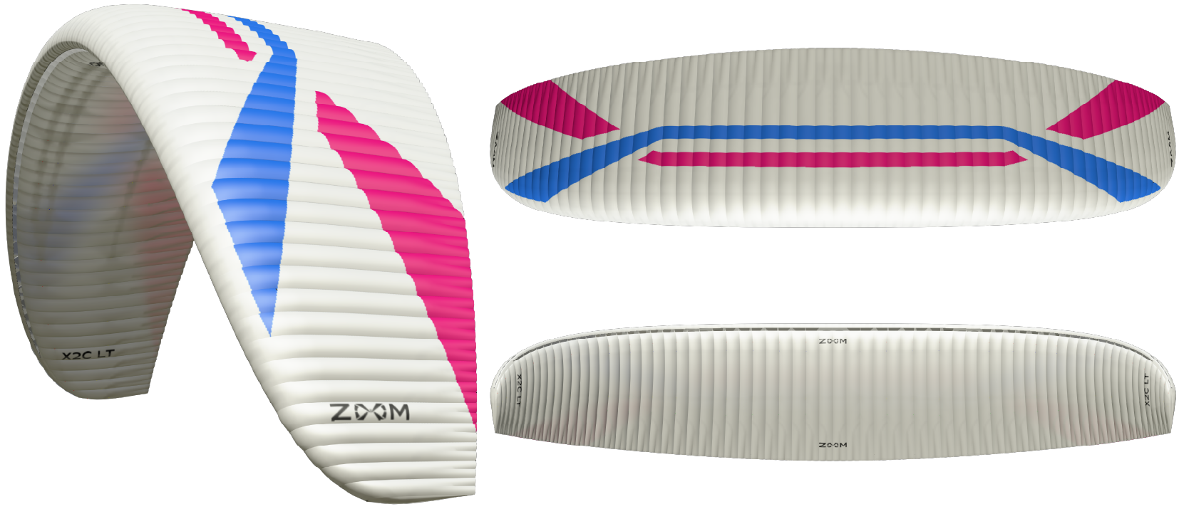 Der X2C LT vereint moderate Leichtigkeit mit Top Leistung. Alex Höllwarth setzte bei der Entwicklung der Leichtversion des X2C seine vieljährige Erfahrung im Design von leistungsstarken Leichtschirmen um. Die gelungene Materialmischung bei Segel- und Leinenmaterial mit dem gewohnten und geschätzten ZOOM-Handling machen den X2C LT einzigartig in der EN C – Sportklasse. X2C LT Piloten werden das geringe Gewicht in Verbindung mit der in dieser Klasse außergewöhnlich hohen Leistung schätzen.